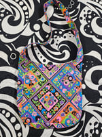 Bright psychedelic flowers vintage fabric bag