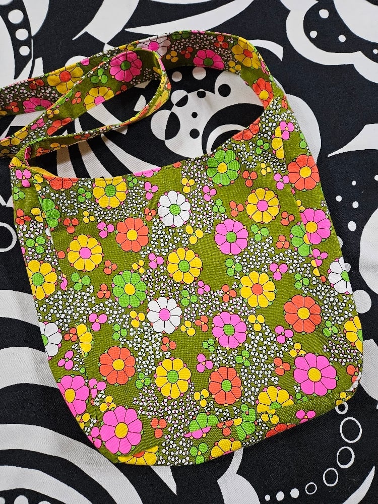 Bright flower shoulder bag made from vintage fabric